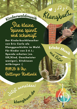 Einstieg jederzeit möglich, monatlich kündbar, 50% Geschwisterrabatt. Kindermusikerlebnisse und Naturpädagogik mit Herz im Göttinger Stadtwald. Wir freuen uns auf euch!